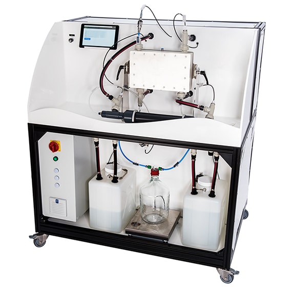 For your own investigations we offer our customized membrane distillation units. The main users of our PURA-Lab are universities, institutes, laboratories and companies who conduct research and practical studies on membrane distillation. This highly precise laboratory set up is fully automatic and suitable for the investigation of all aspects of the membrane distillation process as well as material research e.g. on membranes. The PURA-Lab is equipped with a flexible test cell, which can encompass any MD channel configuration or material sample.
